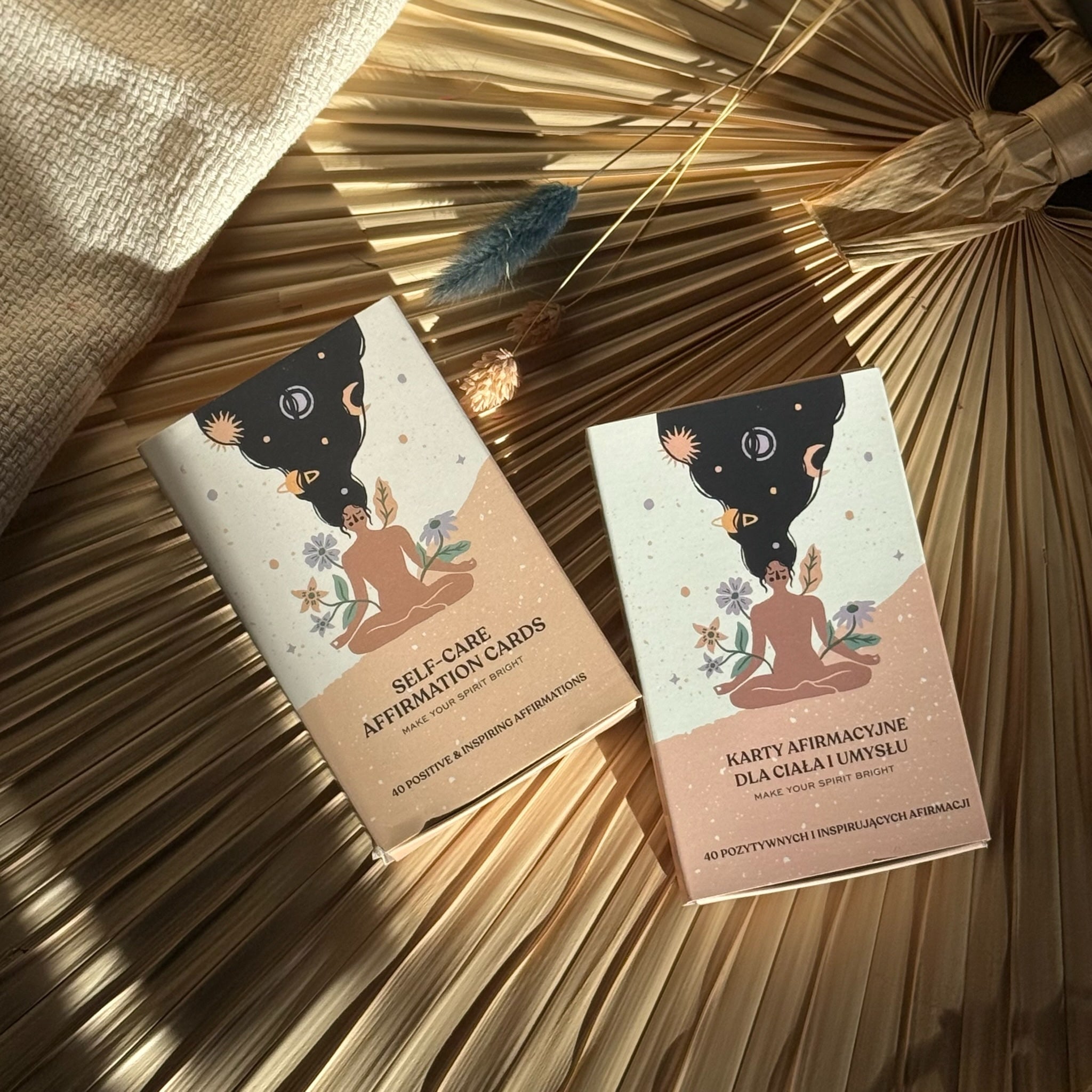 Karty afirmacyjne to talia 40 kart z pięknymi ilustracjami przedstawiające afirmacje dla ciała i umysłu.