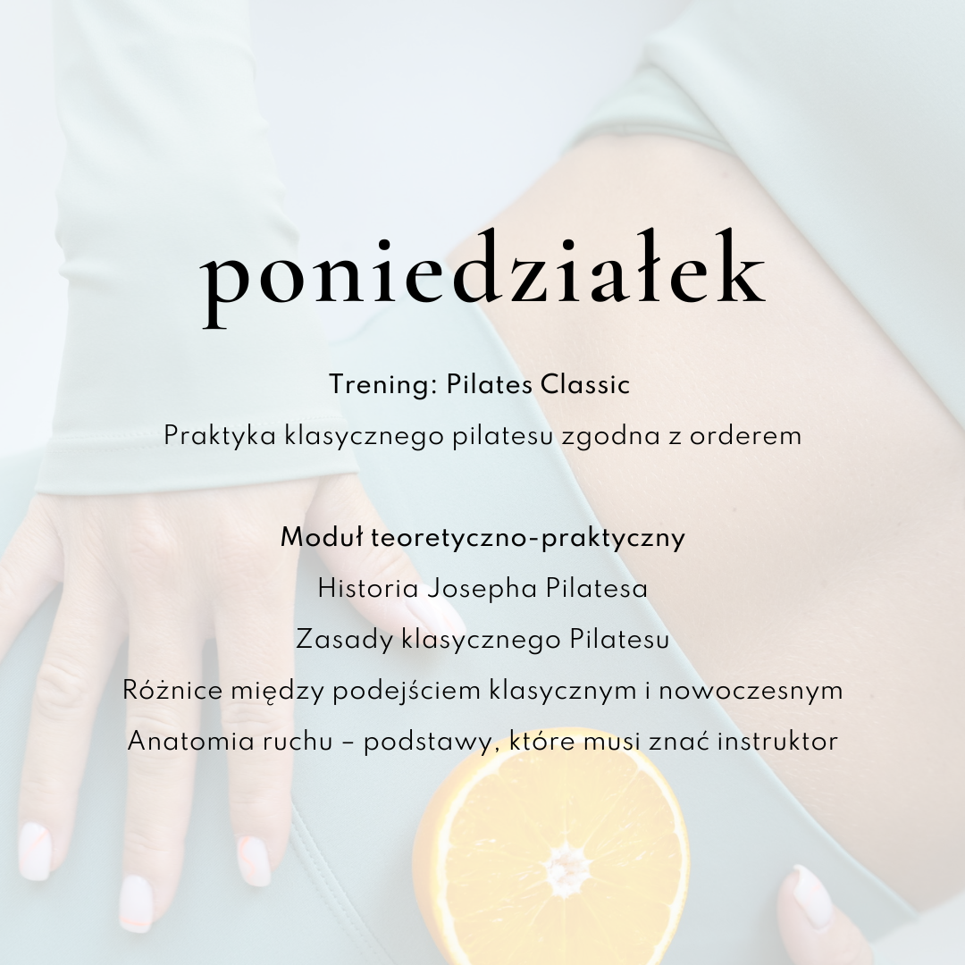 Zanurz się w świadomy ruch, poznaj podstawy klasycznej metody Pilates oraz nowoczesnego podejścia. Naucz się prowadzić zajęcia, które wzmacniają ciało, budują mobilność i przywracają równowagę. To nie tylko schematyczne ćwiczenia, ale też sposób pracy z ludzkim ciałem i zmieniania go na lepsze.✨