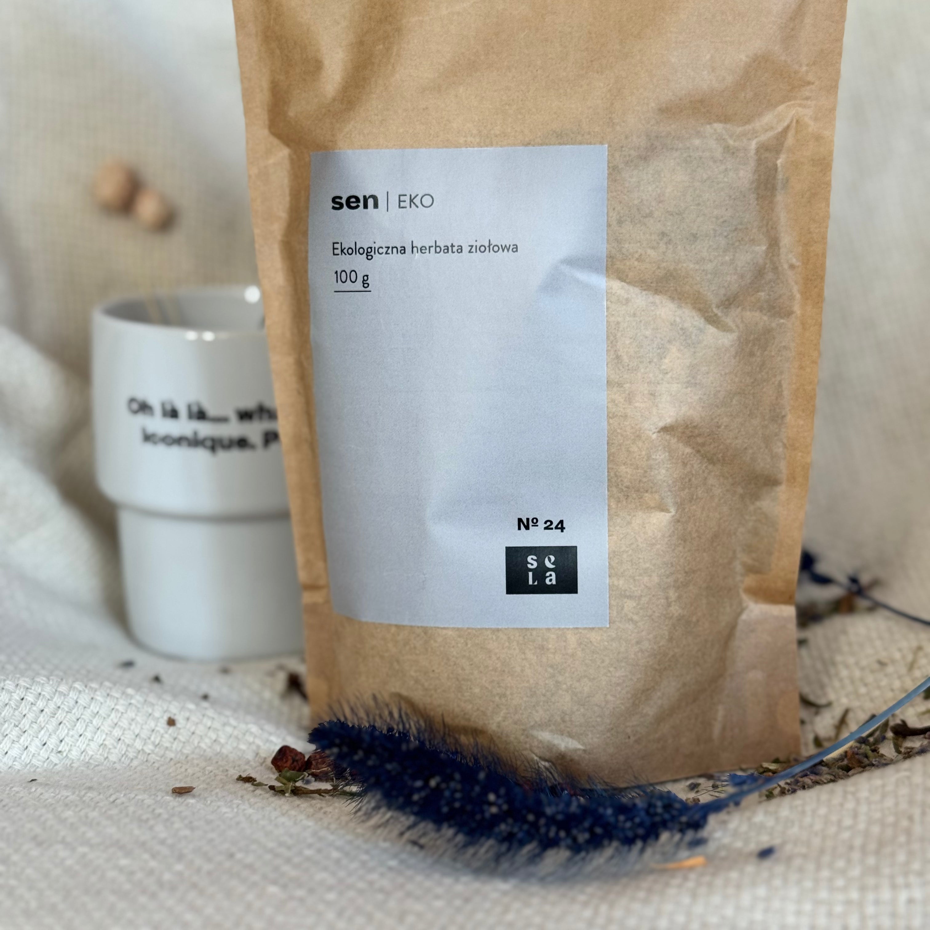 Herbata ziołowa firmy SELA ułatwiająca wyciszenie i zasypianie.