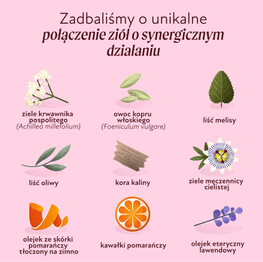 Starannie dobrane składniki współpracują ze sobą, by wesprzeć organizm nawet przy bolesnych i obfitych miesiączkach. Każdy łyk to naturalny krok w stronę większego komfortu.