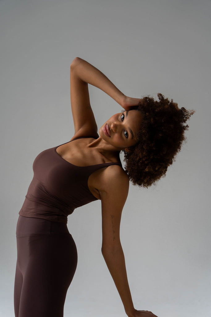 Ten sportowy top z eleganckim kwadratowym dekoltem i zakrytym brzuchem łączy delikatność z efektownym wyglądem. Subtelnie odsłania plecy, podkreśla biust i zachowuje pełen minimalizm oraz klasę.