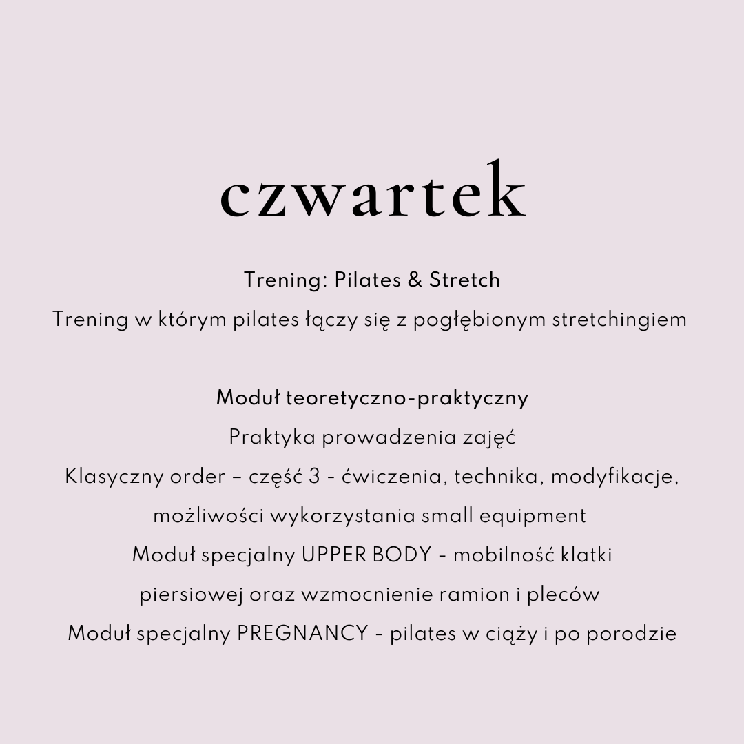 KURS INSTRUKTORA PILATESU | 5 intensywnych dni | 40 godzin dydaktycznych | certyfikat ukończenia kursu